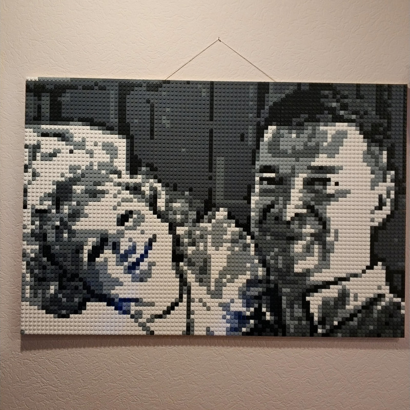 Этот конструктор - замечательный инструмент для сборки картины в стиле пиксельарт. И совместим с детским ЛЕГО по размеру элементов. То есть в принципе дети тоже могут активно участвовать в сборке. Заодно тренировка мелкой моторики. Пока собрали только 1/4 часть. Вторая четверть на подходе.