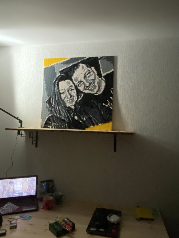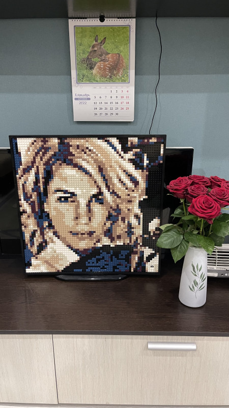 Картинка вдали смотрится четче, чем вблизи) но сам процесс сборки очень азартен. Интересно, как создается картинка. Пока оставил первый вариант фото, надоест - буду пересобирать. Удобно, что конструктор пересобираем много раз