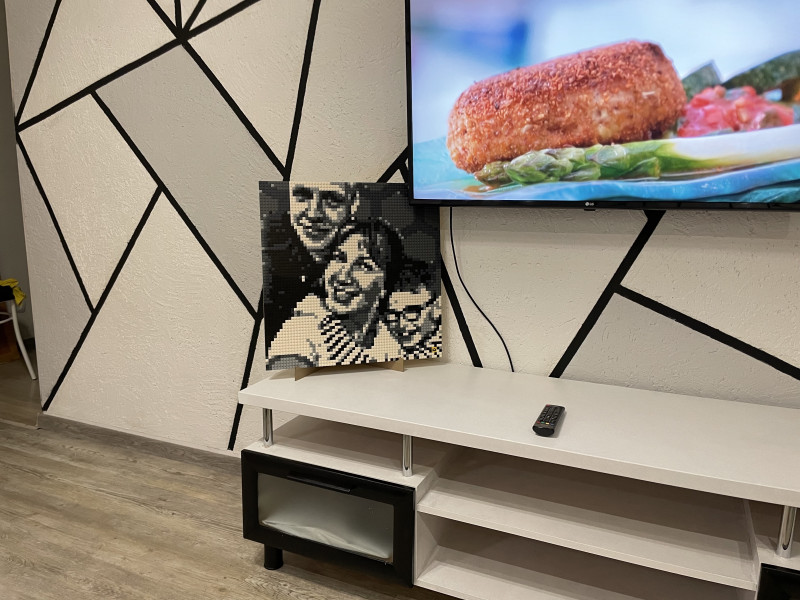 Картинка вдали смотрится четче, чем вблизи) но сам процесс сборки очень азартен. Интересно, как создается картинка. Пока оставил первый вариант фото, надоест - буду пересобирать. Удобно, что конструктор пересобираем много раз