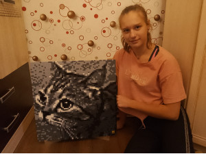 Я приятно удивлена , как программа так точно смогла сгенерировать фотографию. Я до последнего не верила, что такое можно сотворить. Мне понравилось абсолютно всё! От доставки до самого товара. Это прекрасно подойдёт для подарка))) У меня вышло 5 часов работы на 2900 шагов. Спасибо QBRIX за возможность творить самим , то что кажется нереальным
