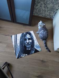 Очень эффектно получилось! Такую красоту не жалко повесить на стену. Сделала свой портрет, потратила на всё часа 3-4, несмотря на то, что габариты внушительные. Лучше всего получаются именно селфи. Однозначно, рекомендую. И как для себя, и в качестве оригинального подарка:)