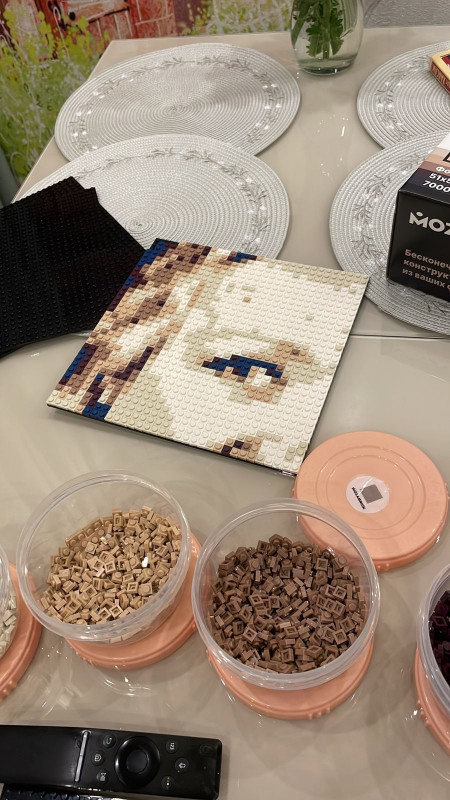 Шикарная идея, отличное времяпровождение. Понравилось, насколько точная инструкция все удобно, кроме одного: были бы коробочки, куда складывать оставшиеся пазлы. В остальном все идеально: можно выбрать размер из нескольких конструкторов! Можно выбрать контрастность будущего фото! И все интуитивно понятно. Я довольна! Хотим теперь ещё купить мозабрик. Отличная идея для свадьбы/годовщины/дня рождения или просто детям лет от 8