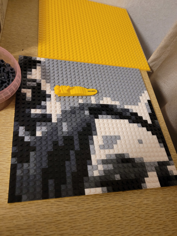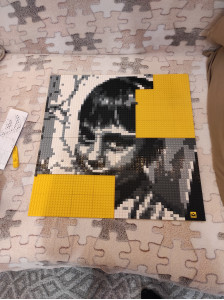 Данный конструктор решил купить племяннице на День Рождения. Чтобы эффект подарка получился на высшем уровне, решил собрать её портрет. Сейчас мне осталось собрать одну часть, но уже выглядит просто шикарно )
