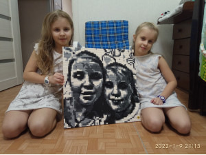 Я осталась в восторге, сама по себе идея то создания конструктора проста, что вышивка крестиком, но получила я огромное удовольствие собирая портрет своих сыночков, приятно провела свободное время, приятно радует результат работы, отличная получилась интерьерная картина!!! Спасибо "Деду Морозу" ;) за такой подарок! Считаю, что это отличная идея для подарка не только для детей, но и подойдет для любящих креативные вещицы подростков, для молодоженов, для любителей спокойно проводить вечера за каким то методичным занятием!