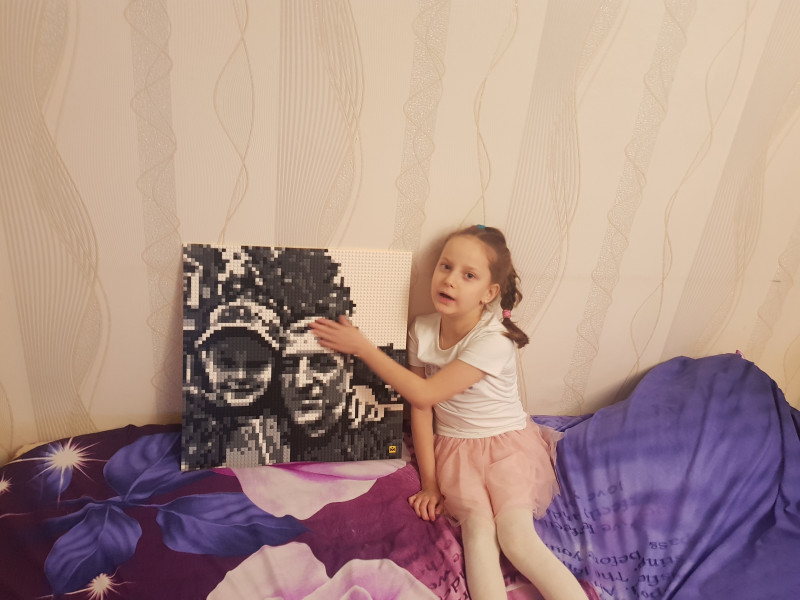 Данный конструктор решил купить племяннице на День Рождения. Чтобы эффект подарка получился на высшем уровне, решил собрать её портрет. Сейчас мне осталось собрать одну часть, но уже выглядит просто шикарно )