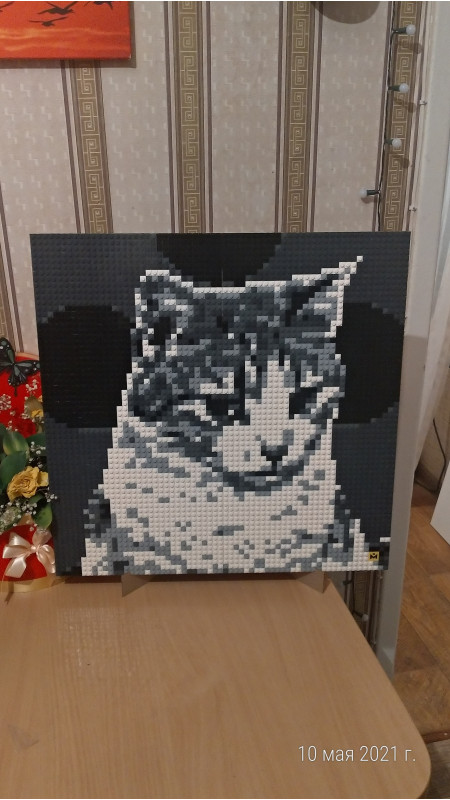 Шикарный конструктор, собирали всей семьёй. Увлекательная сборка, простая и понятная инструкция. Решили сделать вот такой портрет, как власть сменится, cделаем другой, ведь его можно разобрать и собрать что угодно. Рекомендую для подарки, я уже брату на ДР заказал.