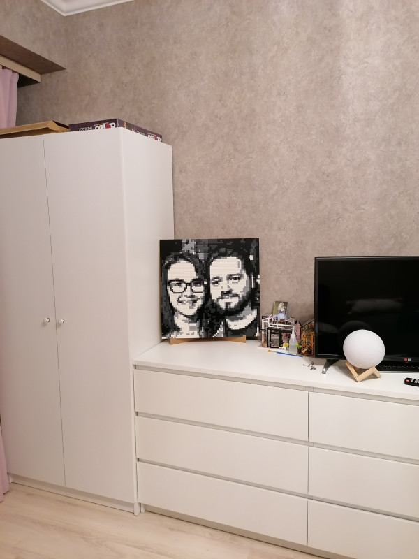 Очень необычный вариант конструктора. У меня размер S. На сборку ушло два вечера. Захватывающий процесс собирания собственной фотографии! Теперь замечательно дополняет интерьер. Спасибо за идею!