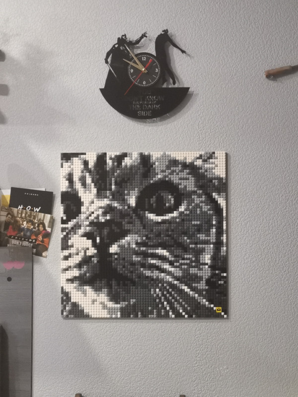Получили конструктор в подарок. Инструкции были понятными. . Процесс выбора фотографий простой и можно попробовать несколько вариантов. Программа показывает как будет выглядеть результат. Собирали всей семьей. Результат очень понравился. На стене смотрится отлично, особенно если смотреть на большем расстоянии. Процесс крепления на стену был самым сложным из всех частей. Но все получилось отлично!