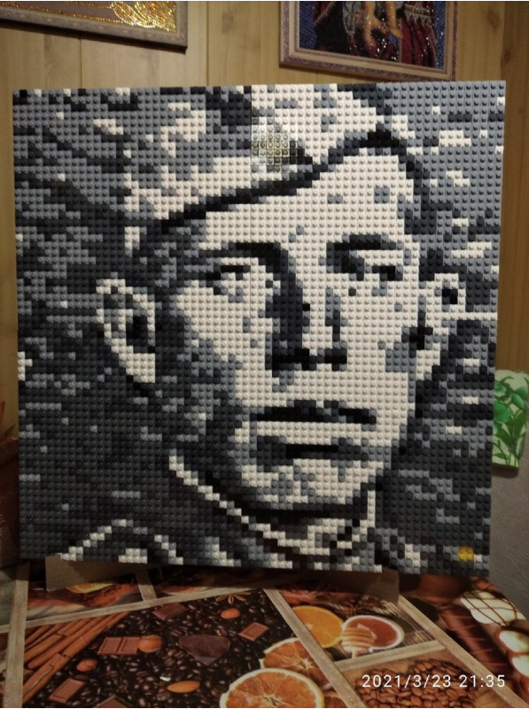 Шикарный конструктор, собирали всей семьёй. Увлекательная сборка, простая и понятная инструкция. Решили сделать вот такой портрет, как власть сменится, cделаем другой, ведь его можно разобрать и собрать что угодно. Рекомендую для подарки, я уже брату на ДР заказал.