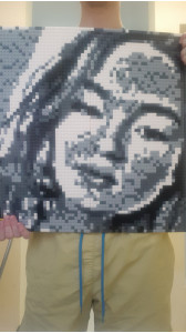Очень эффектно получилось! Такую красоту не жалко повесить на стену. Сделала свой портрет, потратила на всё часа 3-4, несмотря на то, что габариты внушительные. Лучше всего получаются именно селфи. Однозначно, рекомендую. И как для себя, и в качестве оригинального подарка:)