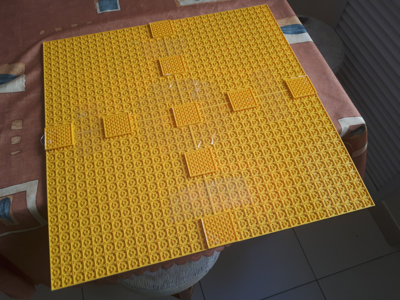 Конструктор красивый, пальцы болят, но результатом довольны. Единственная проблема - прямоугольные крепления, которые должны держать четыре основных части вместе ничего не держат. Картинка разваливатся, стоит её чуть-чуть приподнять. В итоге дополнительно склеили всё скотчем с обратной стороны.