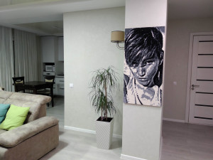 Это классная задумка, мне кажется, что впишется в любой интерьер. На стене брак производителя обоев, закрыл картиной mozabrick.