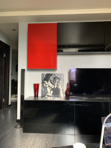 Это классная задумка, мне кажется, что впишется в любой интерьер. На стене брак производителя обоев, закрыл картиной mozabrick.